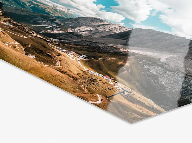 Laser exposure prints your image on premium paper with lively colors and sharp detail. The print is UV-laminated and mounted on aluminum Dibond backing with a silicone seal for durability and a gallery-ready finish.